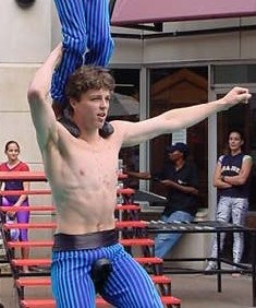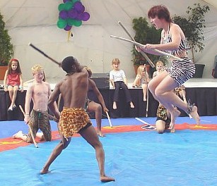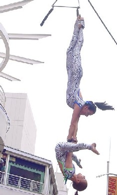 Free shows, no training fees . . . how do they do it? The Circus has one major sponsor in the form of Old Mutual Properties, and they perform free of charge in shopping centres belonging to the large corporate. But most of their funding they earn themselves, through corporate, stunt and film work. Two recent movies they were involved in are Home Alone 4 and Sinbad. Several years ago they did the stunt work for the Sanlam advert in which a trapeze artist walked across a tightrope strung between two buildings.