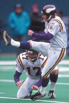 18 June 2002 It is well known that South Africa has produced some of the all-time greats of golf, cricket and rugby – golfers Bobby Locke and Gary Player, cricketers Mike Procter and Graeme Pollock, and rugby players Frik du Preez and Naas Botha are among those that spring to mind. Less well known is the fact that a man seemingly destined for American football's Hall of Fame, the scorer of the most points in the history of the NFL – the professional American football league that culminates in the spectacular Superbowl every year – was born in Parys and raised in Durban, South Africa. Gary Anderson, kicker extraordinaire, nearly 43 years of age, and one of only three men to play in 300 games in an NFL career, has played in the league since 1982. He leads all NFL players with 2 133 points over his 20-year career, and holds the incredible record of going through an entire season – 1998 – without missing a single kick, making 94 out of 94 shots at goal. In that year, Anderson was a key figure in the the Minnesota Vikings' run to the NFC Championship game, his 164 points breaking the NFL record for single-season scoring by a kicker and earning him his fourth career selection to the Pro Bowl. The Vikings' elected this year not to re-sign the SA-born veteran, a decision that may have turned on the NFL's complicated rules limiting the amount that any one team can spend on players' salaries. It is interesting to note that Anderson attributes his great powers of concentration to his time in South Africa. Playing cricket at school, he was an opening batsman and, as he explains: "Cricket takes one full day to play out. Each team only bats once at the high school level, and if you make just one mistake, you're out. "I was always the first batsman, and I remember from a very young age I always hated to make a mistake and then sit around and watch for a couple of hours while the rest of your team mates finished up that particular innings. The whole concentration part of cricket always helped me." Hearing how the future Hall of Famer stumbled on the game leaves one with a sense that it was all predestined. His family moved from South Africa to Pennsylvania in 1978 after he finished high school. His father had played professional soccer, and Gary too was good at the game. Curious to see how an American football compared to a soccer ball, he got his hands on some pigskins one day and took them down to the local high school field to see how they travelled when kicked – more like a rugby ball or more like a soccer ball? A man approached him and starting chatting. He turned out to be the local school's coach, and was interested in signing Anderson up. The coach was also a friend of highly respected coach Dick Vermeil of the NFL's Philadelphia Eagles. He arranged a tryout for Anderson with the Eagles when, as Anderson admitted, "I didn't even know what football was". As it happened there were coaches from various colleges watching the Eagles’ practice that day and, after some good words from Vermeil, Anderson was offered scholarships from a number of the universities. He chose Syracuse in New York State. In his final year playing for the Orangemen, Anderson set a college record when he was successful with 97.4% of his kicks (18 of 19 attempts), and was named to the All-American College team. When the professional football draft came round, the Buffalo Bills selected Anderson, but when they released him during training camp the Pittsburgh Steelers pounced and signed him up. It proved to be the Bills’ loss and the Steelers’ gain. Anderson played nine games in his first season in Steel City, scored 52 points, and was named to the NFL All-Rookie team at season's end. The following season Anderson totalled 119 points, leading the American Football Conference (the NFL is divided into two conferences, the winners of which advance to the Superbowl) in scoring. He was named Most Valuable Player on the Pittsburgh Steelers’ roster and earned selection to the Pro Bowl, the All Star game at the end of the season to honour the top players in the game. In 1984 he led all scorers in the AFC once more and set a team record for the longest field goal with a successful 55-yard kick against the San Diego Chargers. In 1985 Anderson was again the leading scorer in the conference, becoming the first player since Gino Capeletti (1963-66) to win the scoring title for three consecutive seasons. His 139 points for the season was a new Steelers record, as were his 33 field goals, 18 consecutive successful field goal attempts and five successful field goals in a game. 1986 brought Anderson the one-hundredth successful field goal of his career, a mark he achieved as the most accurate kicker in NFL history. The following year he was named as an alternate (reserve) for the Pro Bowl. In 1988 Anderson had his fourth season of scoring over 100 points, finishing with 118, the third-highest total in the league. He improved on his team record by kicking six out of six field goals for the Steelers against the Broncos and finished the game with 21 points, becoming the first kicker from the AFC to achieve the feat. His streak of successful point after tries (kicks after touchdown) was brought to an end at 202. Anderson became the highest points scorer in Steelers history in 1989, scoring 91 points in the season. In 1990 he improved on that mark by one point, scoring 92. He reached the 100 point mark again in 1991, finishing the season on that mark exactly and in the process becoming the 19th player in the history of the NFL to score 1 000 career points. In 1992 Anderson's points output improved to 113, third best in the AFC, while in 1993 he scored 116 points. He was selected to the Pro Bowl once more after successfully converting 93.3% of his field goal attempts. Anderson missed just five kicks all season in 1994, scoring 104 points to top the 100-point mark for the eighth time. The following year he contributed 98 points as the