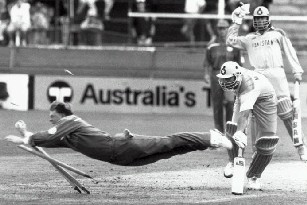 Regarded by many as the finest fielder ever, Jonty Rhodes exhibits his exceptional athleticism (Photo: Fun on the Net)