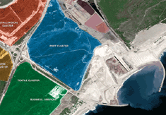 An aerial view of part of the Coega project, showing the port and some of the colour-coded manufacturing clusters. The textile cluster is coloured green and at the bottom right (Photo: Coega Development Corporation) Coega: SA's biggest infrastructure development project since 1994 Coega: one of the biggest infrastructure development projects in South Africa since 1994 (Photo: Coega Development Corporation)